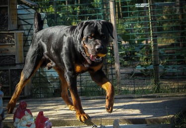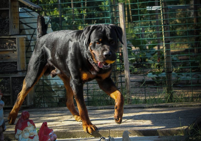 Urko est un Rottweiler qui, dès qu’il a croisé le regard de son maître, a su que son destin était d’être aimé et chéri. Grand joueur dans l’âme, il ne se sépare jamais de sa petite balle jaune.